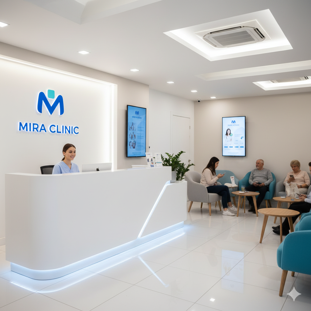 ميرا كلينك (Mira Clinic) هي مركز طبي حديث يقدم خدمات رعاية صحية عالية الجودة بلمسة تجمع بين الخبرة، التقنية، والاهتمام الحقيقي بسلامة وراحة المرضى. نسعى في ميرا كلينك لتقديم تجربة علاجية متكاملة تعتمد على أحدث الأجهزة الطبية، وفريق متخصص يعمل باحترافية لضمان أفضل النتائج. يقدم المركز مجموعة متنوعة من التخصصات والخدمات الصحية، تشمل الفحوصات الأساسية، العلاجات التخصصية، خدمات التجميل والجلدية، بالإضافة إلى الاستشارات الطبية الدقيقة التي تساعد المرضى على اتخاذ قرارات صحية سليمة. نلتزم في Mira Clinic بقيم الشفافية، الجودة، والاحترام، ونعمل باستمرار على تطوير خدماتنا لضمان تقديم رعاية موثوقة تليق بمرضانا وتلبي احتياجات المجتمع.